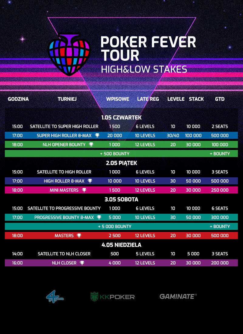 Pełny harmonogram festiwalu Poker Fever Tour: High&Low Stakes