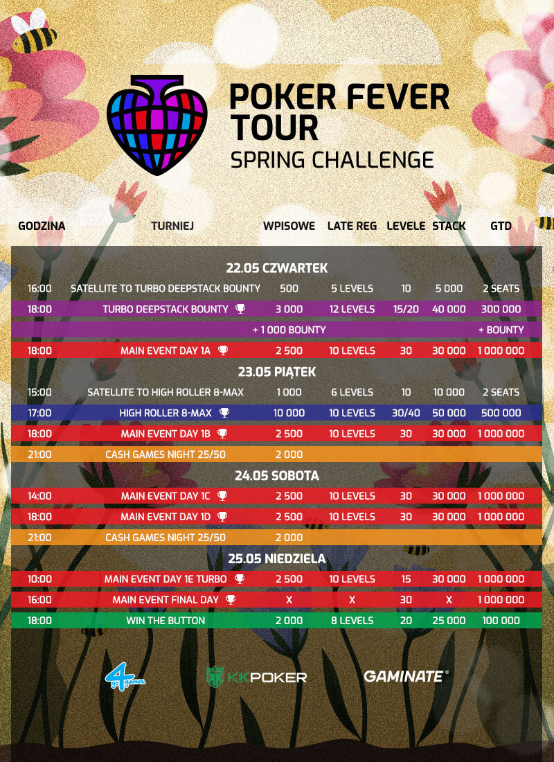 Pełny harmonogram festiwalu Poker Fever Tour: Spring Challenge