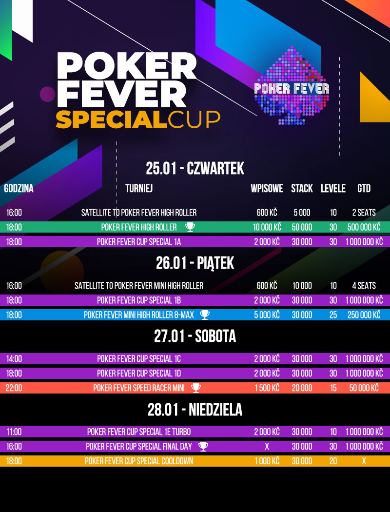 Kolejny przystanek festiwalu już w styczniu, kiedy to spotkamy się w Go4Games Casino na festiwalu Poker Fever Special Cup. Harmonogram znajdziecie poniżej.