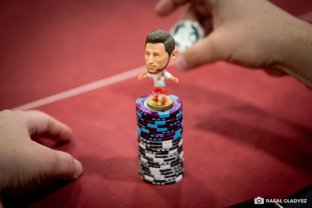 W końcu w tym losowaniu na kogoś musiało wypaść i wypadło na Żuchwę. Zagrał on all in z A2s i czeski rywal na big blindzie sprawdził go nie patrząc w karty. Okazało się, że miał T8, a że trafił ósemkę na riverze, to nasz gracz został bubble boyem Main Eventu. Ale jak ta misja miała się powieść, jeśli żetonów Żuchwy broni figurka Krychowiaka??