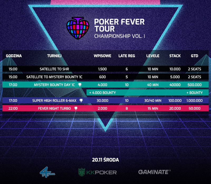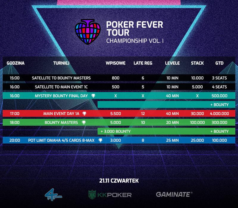 Harmonogram Poker Fever Tour: Championship Vol. I - środa 20 listopada
