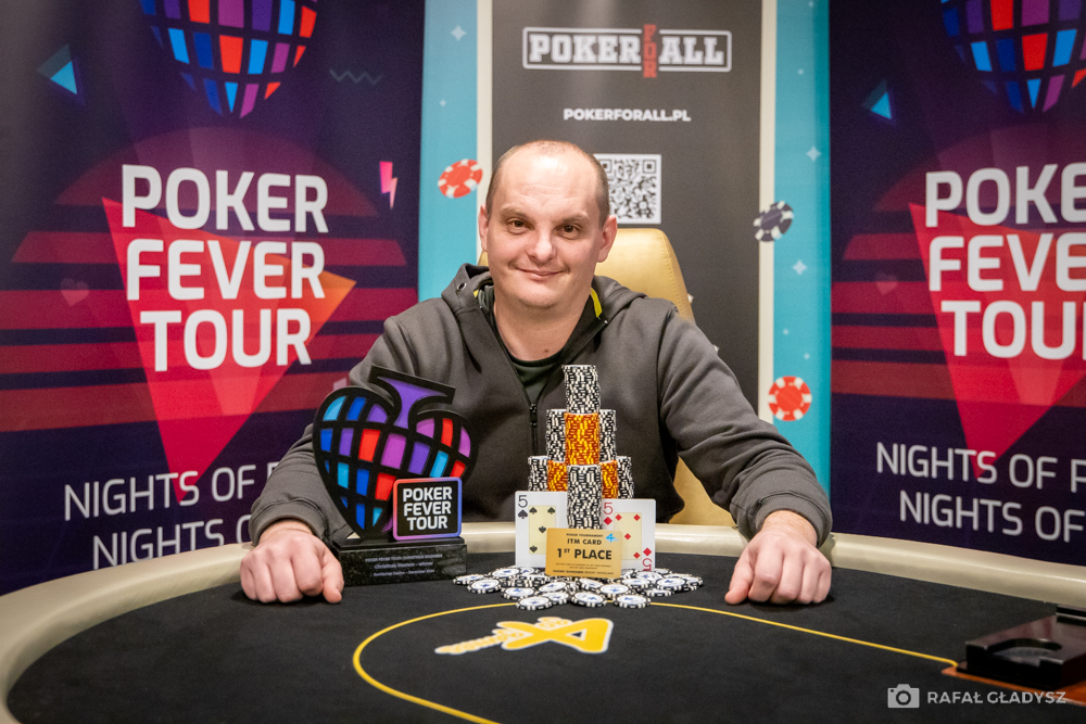 Za nami dwa dni festiwalu Poker Fever Tour: Christmas Madness i dwa maratony. Wczoraj znowu siedzieliśmy w kasynie Go4Games do 6 rano, aby poznać zwycięzcę turnieju Christmas Masters. Niestety, tym razem nie udało się żadnemu z naszych graczy sięgnąć po zwycięstwo, choć na stole finałowym mieliśmy aż sześciu Polaków. Wygrał ten, który flipował, jakby bogowie pokera trzymali nad nim jakąś specjalną pieczę. Vlastislav miał kilka okazji, żeby z turnieju odpaść, a za każdym razem, gdy był już na shorcie, to wygrywał flipa o życie i dalej siedział przy stole. I tak na nim dosiedział, aż do momentu, gdy poszedłem robić zdjęcie zwycięzcy...