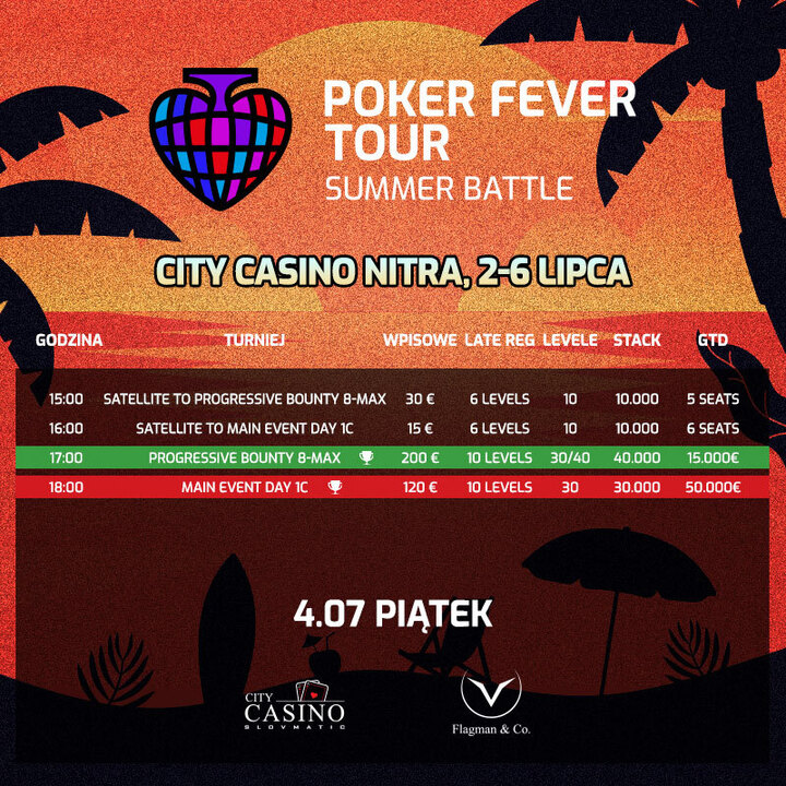 Harmonogram Poker Fever Tour: Summer Battle - piątek, 4 lipca
