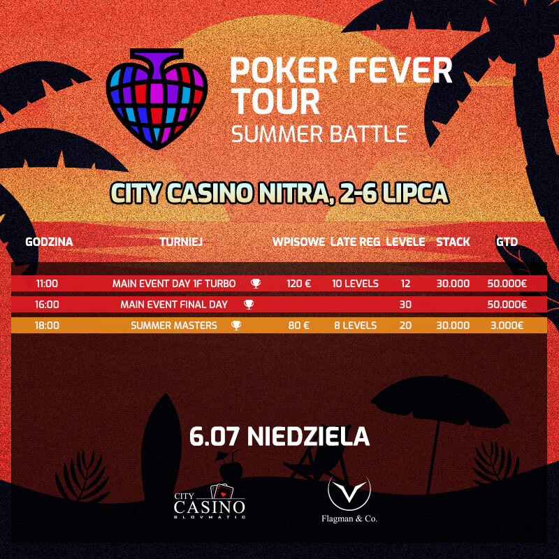 Harmonogram Poker Fever Tour: Summer Battle - niedziela, 6 lipca